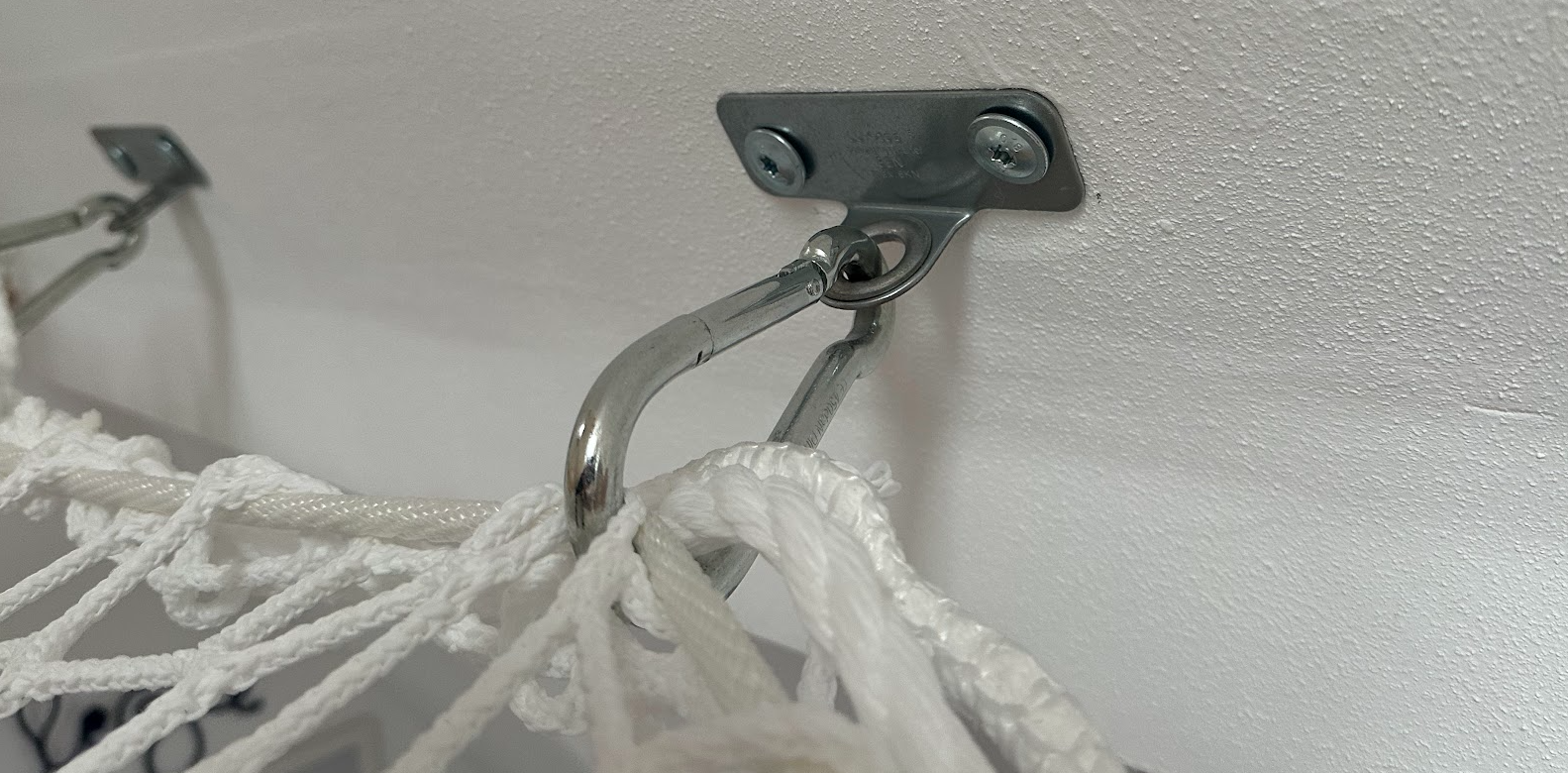 Achtung: Nur geeignet für die Befestigungen in geringen Abständen. Maximal 1,00 m zwischen zwei Karabinerhaken dieser Art.