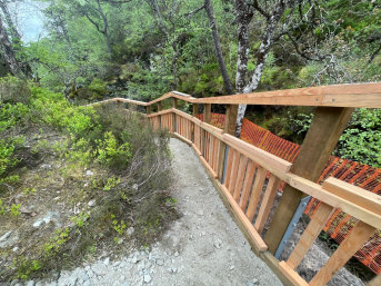 Wir haben 14 mm große Löcher in den Fels gebohrt, die Pfosten in die Löcher geschoben und den Zaun im Handumdrehen aufgestellt.