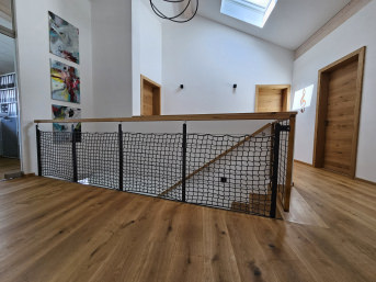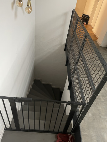 Wir haben das Schutznetz für unsere Treppe im Obergeschoss bestellt, um die doch recht weit auseinander stehenden Streben nochmals abzusichern.