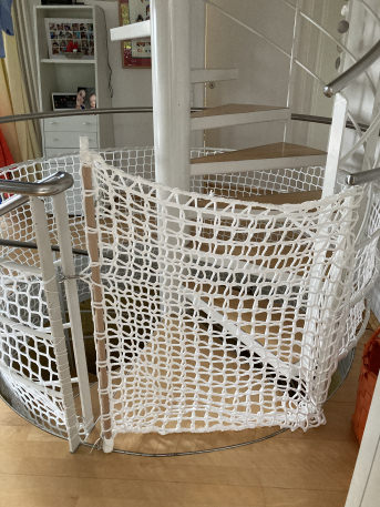 Wir haben das Schutznetz in unserem Wohnhaus eingesetzt zur Absicherung der Wendeltreppe, damit unser Enkelkind weder am Geländer klettern kann noch auf die Treppe gelangt.