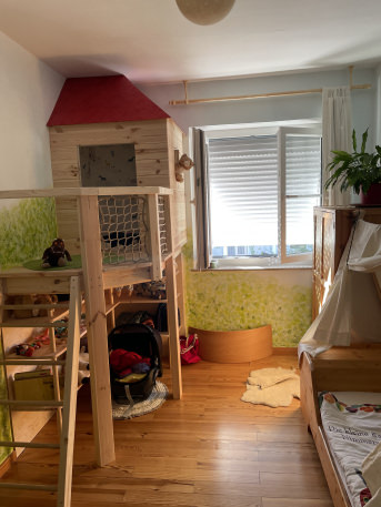 Seitlich ist noch ein Kletternetz geplant, welches dran kommt, wenn die Kinder etwas größer sind.