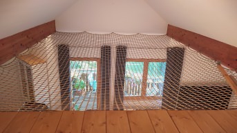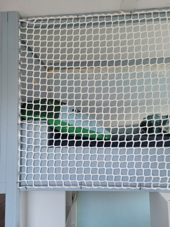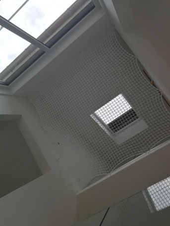 Damit genug Licht rein kommt, haben wir die Länge der Empore mit einem Netz von schutznetze24 abgesichert.