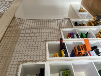 Ich habe für meinen Sohn ein kleines Spielhaus mit Etage in seinem Zimmer gebaut. Für die Etage brauchte ich eine Begrenzung, damit er nicht herunterfallen kann. Leider fand ich auf anderen Plattformen nur fixe Maße für Schutznetze, bis ich dann auf diese Seite gestoßen bin.