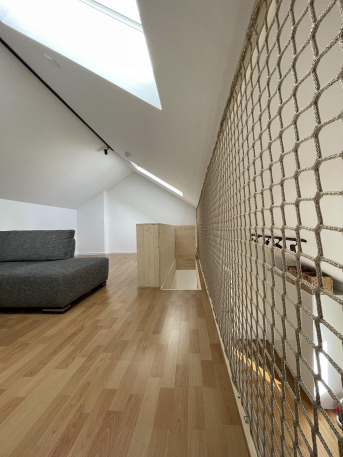 Der „Spitzboden“ wurde durch das Netz und das entsprechende Befestigungs- Material gesichert! Durch das genaue Maß des Netzes und die super Qualität der „Schellen“ war die Montage problemlos! Nun haben die Jungens eine gut gesicherte Spiel Base!