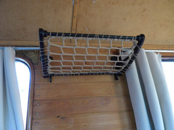 Da wir bei unserem alten Wohnmobil keine Schutzvorrichtung für das Alkovenbett hatten und nun unsere Enkel auch mal mitfahren möchten haben wir uns informiert wie man kostengünstig selbst eine Sicherung vor dem herabfallen baut.