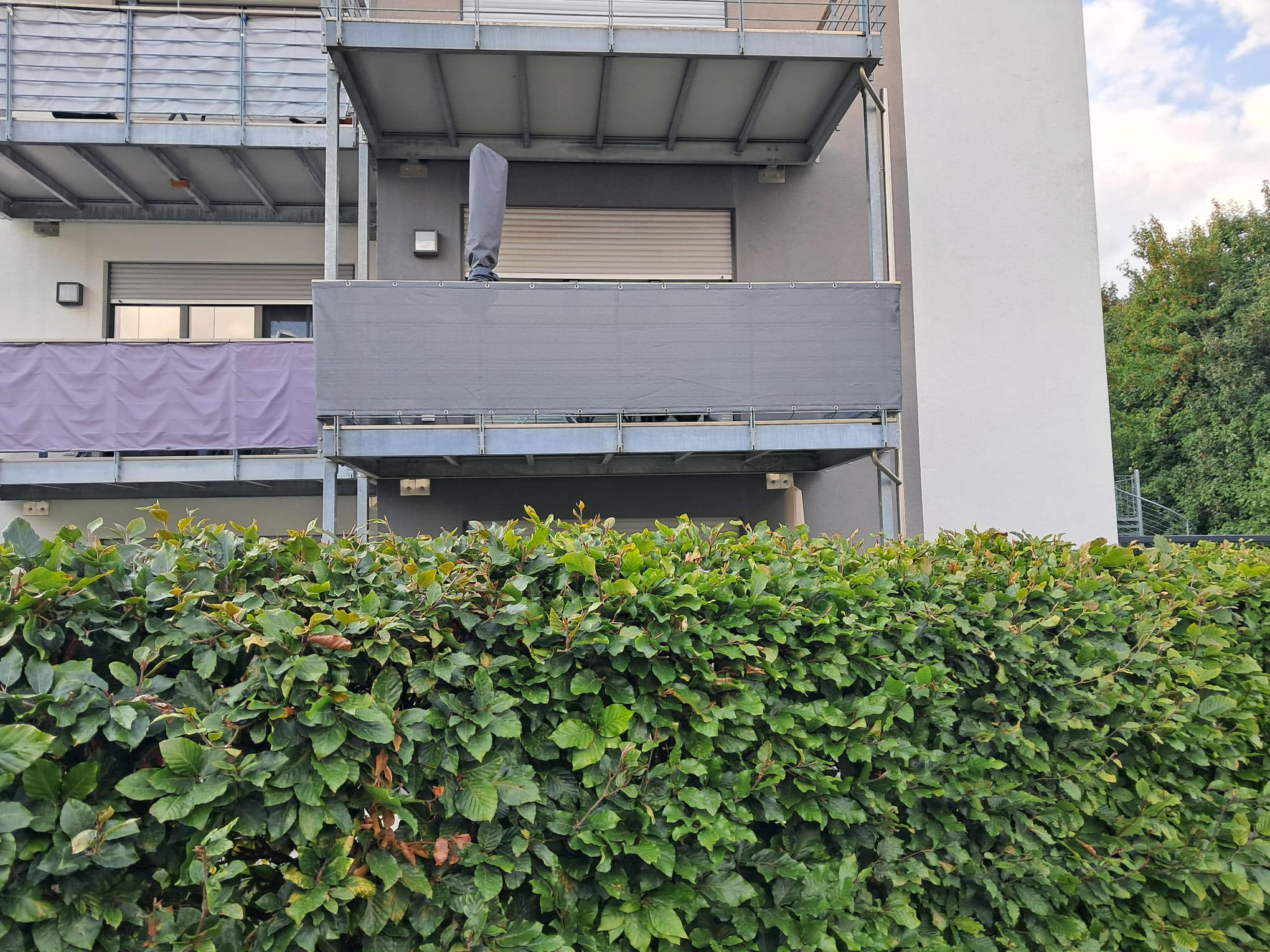 Sicht- und Windschutz auf Balkon im 3. Stock.
