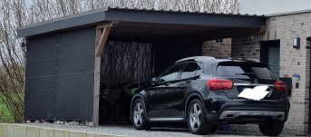 Eine Seite vom Carport zu gemacht. Schüzt vor Schnee und Wind. In den kalten Monaten friert meine Fahrertür so nicht mehr zu!