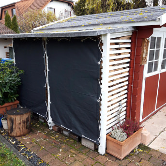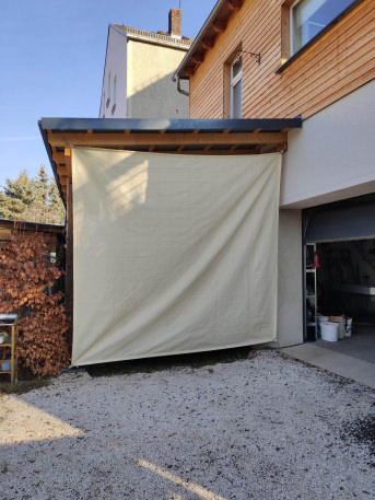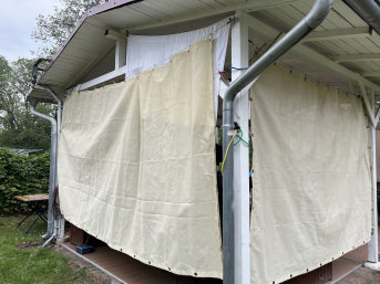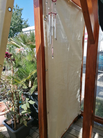 Die Plane ist als Windfang und Sonnenschutz auf unserer Terrasse gedacht.