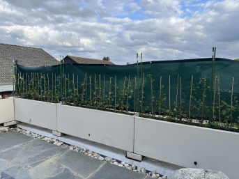 Wir setzen die Pläne als Sichtschutz seitlich am Balkon ein. Sie erfüllt nicht nur ihren Zweck sondern sieht auch von den Nachbargründstücken gut aus.