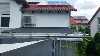 Das Bild zeigt unseren Sonnenschutz auf der Terrasse.