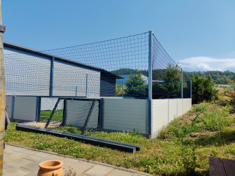 Bei uns finden regelmäßig kleine Fußballspiele statt. Dabei sind hauptsächlich die "jüngeren" Spieler im Vordergrund. Der Jüngste ist 2 Jahre alt und möchte immer wieder mitspielen. Das Netz soll ist nun eine sichere und schöne Abtrennung zum Nachbargrundstück herstellen, damit die Bälle nicht versehentlich Schaden am Haus und Grundstück anrichten. Die Montage war recht einfach und die Qualität hat auch überzeugt. Ich gehe davon aus, dass das Netz auch wieder 20 Jahre hält. Wir wurden von Schutznetz24 sehr gut beraten und unterstützt. Danke an das gesamte Team für die tolle Zusammenarbeit.