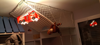Unsere Jungs haben in ihre Zimmer eine zweite Ebene bekommen. Als Abschutzsicherung haben wir uns ein Schutznetz nach Maß anfertigen lassen,welches eine Funktion sehr gut erfüllt. Da unsere Jungs sich jeweils ein Fußballzimmer gewünscht haben, dient das Netz nicht nur zum Schutz sondern sieht auch noch klasse als Tordekoration mega aus. Die Verarbeitung sowie die Größe nach Wunsch wurden erfüllt. Wir würden dir beiden Netze jederzeit wieder so bestellen.