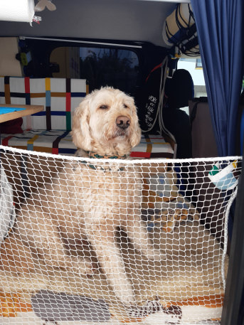 Netz passt perfekt, so kann ich due Schiebetüre des Autos offen lassen ohne dass der Hund heraus springt und lässt sich klein verstauen.