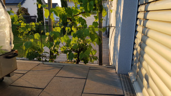 Geländer der Terrasse wurde mit Schutznetz versehen, sodaß unsere Enkel nicht durchklettern können.