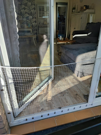Das Netz wurde für den Vogelschutz an einer freistehenden Scheibe wegen Windschutz montiert!