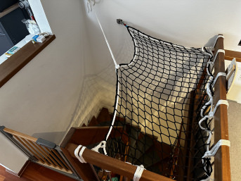 Das Schutznetz haben wir unter die Treppe angebracht, um das Durch- und Herunterfallen unserer Kinder zu verhindern.