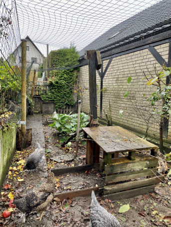 Das Netz dient als Schutz, damit die Hühner nicht in den Hof herausfliegen. Es funktioniert wunderbar und ist eine gute Qualität.
