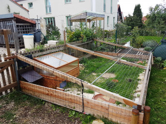 Schutz einer Hühnervoliere gegen Raubvögel.