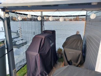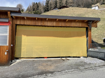 Das Einzige was ich bereue, ist, dass ich nicht 2 bestellt habe. Am 2. Ausgang (der aber nach Osten ausgerichtet ist) haben wir jetzt noch so eine Art Sonnensegel befestigt. Da windet es nicht so heftig und es ist auch ein schmalerer Ausgang. Das lassen wir dann nächstes Jahr machen.
