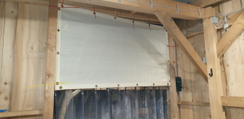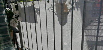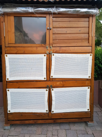 Zum Winter wurden die Gitterfenster "luftdicht" verschlossen, dieses Jahr wurden Windschutznetze nach Maß von außen an die