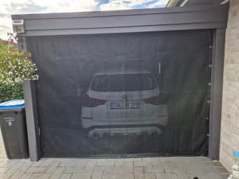 Wir konnten uns die benötigte Abmessung (Länge-Breite) und auch Anzahl der Befestigungselemente (runde Ösen) nach Bedarf konfigurieren.