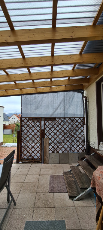 Wir hatten lange nach eine Lösung für unsere Terasse gesucht: Sicht-, Sonnen- und Windschutz sollte es sein! Holz oder Glas würde unser Budget sprengen, deshalb haben wir und für ein Netz entschieden