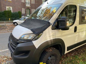 Ich habe lange nach einer Möglichkeit gesucht, ein flexibles, regendurchlässiges aber feinmaschiges Material zu finden, aus dem ich einen DIY Blätterschutz für mein Wohnmobil basteln kann. Im öffentlichen Parkstreifen der Großstadt ist er immer den Blättern und Blüten ausgesetzt und ich wollte ein Zusetzen der Regenablaufrinnen vermeiden. Bislang seit 2 Monaten in Betrieb und es macht sich hervorragend! Der Stoff ist "schwer" genug, um bei Wind nicht umhergeweht zu werden. Blätter bleiben obendrauf liegen, Regen kann durchsickern. Die eingearbeiteten Ösen machten eine Verarbeitung super simpel.