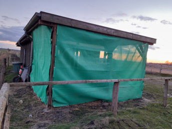 Wie nutzen das Netz um Fesnterfront unseres Ofenstalles abzuhängen und so die Tiere vor Zugluft zu schützen.