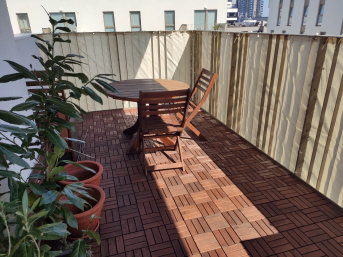 Da er leicht blickdurchlässig ist, haben wir nicht das Gefühl von der Außenwelt abgeschnitten zu sein. Er lässt auch leicht Wind durch, so dass keine Stauwärme auf dem Balkon entsteht.