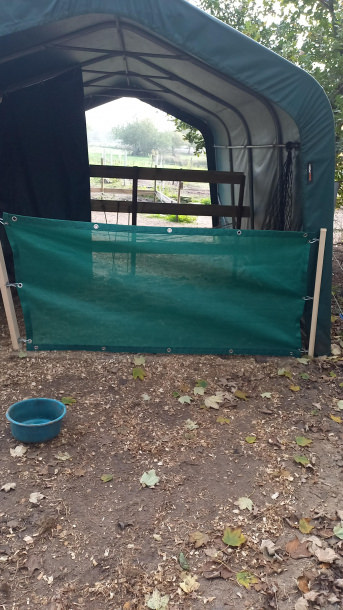 Das zweite Netz ist als Oberlicht über meiner PVC-Streifen Stalleingangstür verbaut. Frischluft ohne dass es reinregnet.