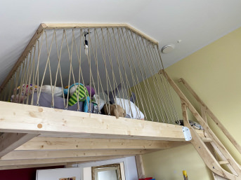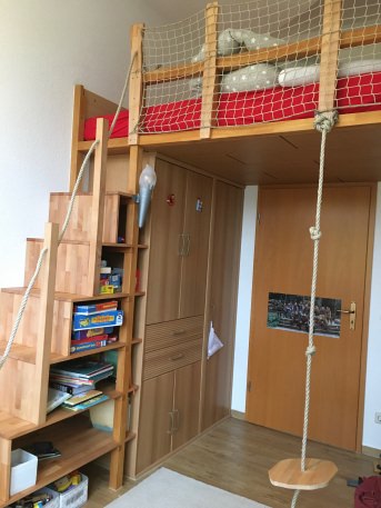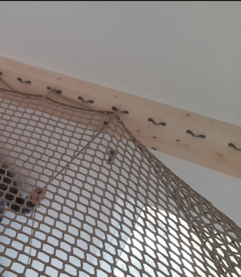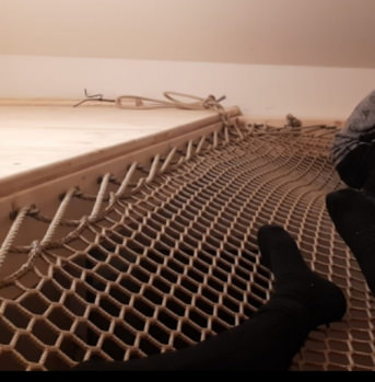 Die Schutznetze haben wir in die Galerien unsere Kinder als Liegenetz eingebaut.